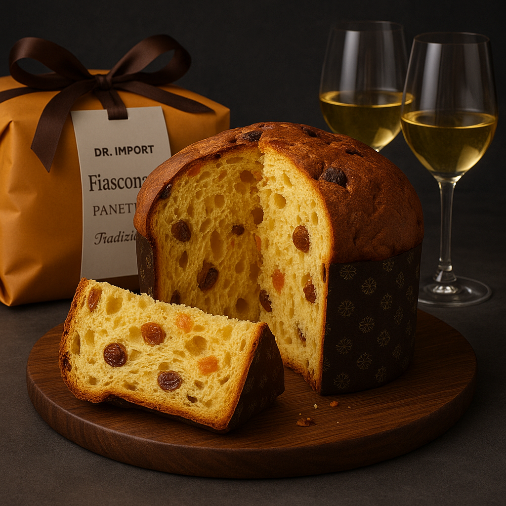 The legendary Fiasconaro Panettone — naturally leavened for 36 hours, soft, fragrant, and elegantly packaged. A masterpiece of Sicilian pastry art, available in limited quantities at Dr. Import.
